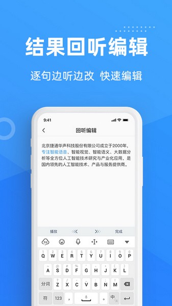 1.回听编辑:支持对转写识别结果边听边改,快速保存
