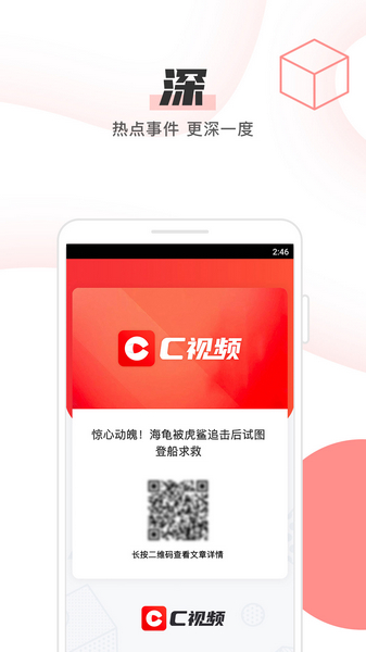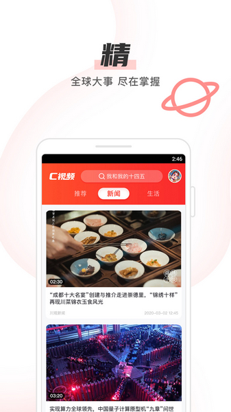 C视频是四川日报全媒体出品的定位快速阅览的微视频新闻客户端。以快速、精选、深度、沉浸为产品定位。以短小精悍的短视频为主,包含国内国际新闻的核心现场,以简洁的产品架构,为用户提供多样化、多维度的优质短视频新闻内容。