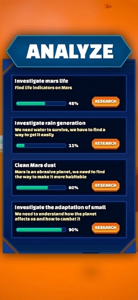 多种高科技的设备需要玩家不断的使用火星的材料进行兑换,通过发展不断建立基地。