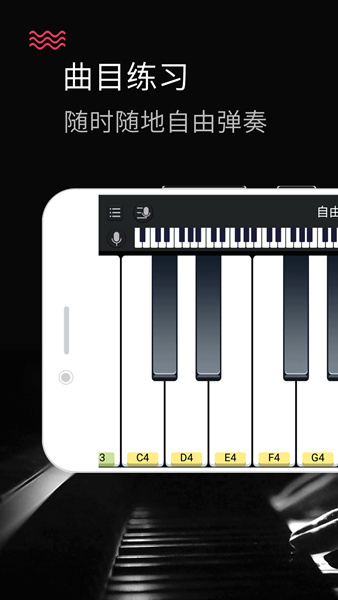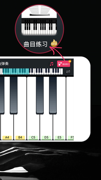 3、通过练习模式可以训练自己的弹奏水平,通过形象的动画学习弹奏方法;