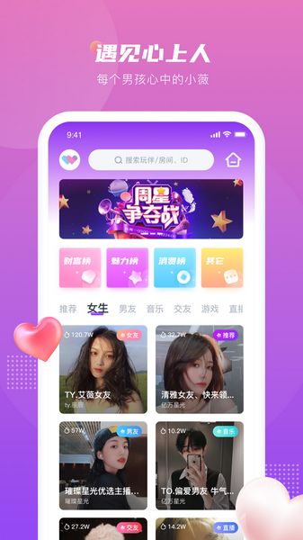 超热闹语音派对,多人在线嗨聊,跳脱传统交友方式,甜蜜互动陪伴你24小时畅聊不孤单~