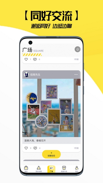 您可以在此页面发布最新动态,分享自己的展馆邀请其他用户参观,共同探讨喜爱的数字潮玩收藏品