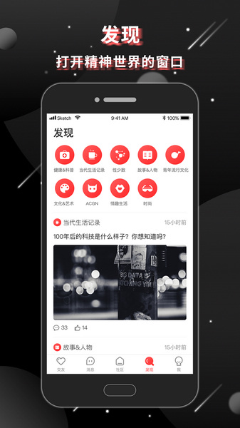 通过发帖展示自己来获得更多好友及朋友关注,分享生活的美好瞬间,发表自己的意见或者参与讨论就有可能进入推荐,被所有用户看到,收获礼物。