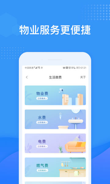 提供物业服务手机门禁钥匙,房屋报事报修,在线缴物业费,代收包裹等,让居民生活更便捷、更安全、更高效。