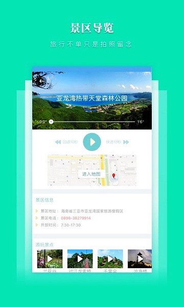 实现三亚及周边主要景区的自助导览功能,方便游客在景区内合理规划游览路线,在主要景点处可以实现自动语音讲解,让游客充分了解景点的历史文化背景和典故,提高旅游体验。