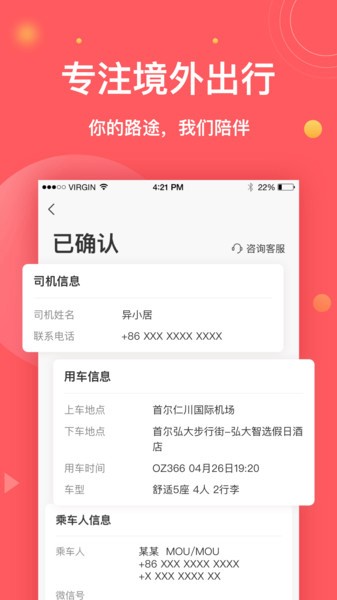 软件操作简单到不能再简单,分分钟就能上手。最棒的是价格透明,不会有隐形消费,车费也是一口价,比打车便宜多了。而且支持微信支付,提现也很方便。如果你的航班延误了,他们还会免费等90分钟,超过时间还能重新安排车辆或者取消订单,服务真的很贴心。