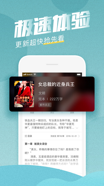 该软件具有许多新颖的资源。它具有独特的阅读方法,自动阅读可以解放双手,它还包括所有类型的军事,历史,青年校园等!