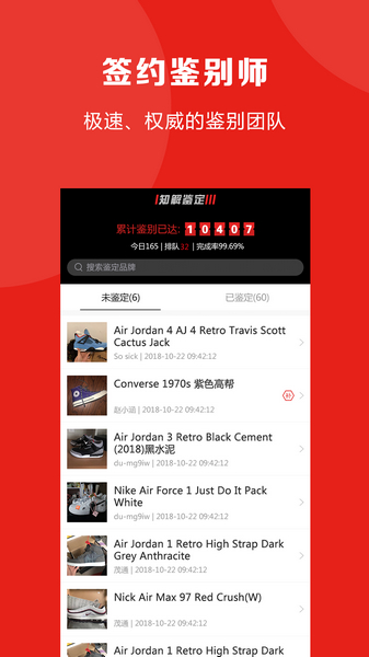知解APP是国内领先的Sneaker鉴别平台,服务于广大的潮流装备爱好者,也是淘宝酷动城指定第三方鉴别合作商。