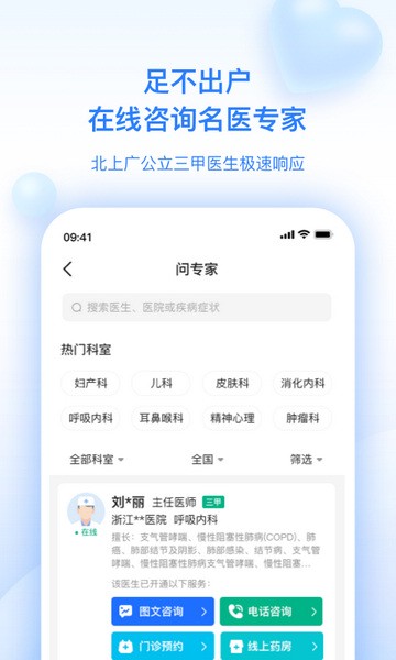 1、专属:权威医生,门诊后一对一的专属、即时服务;