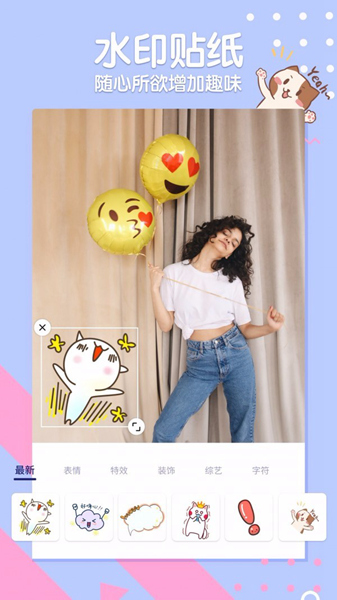 2、非常多有趣的贴纸可以使用,直接点击即可添加,让您的图片内容更为丰富;
