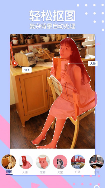 6、还有强大的抠图功能可以使用,一键操作就能更换背景,添加喜欢的背景;
