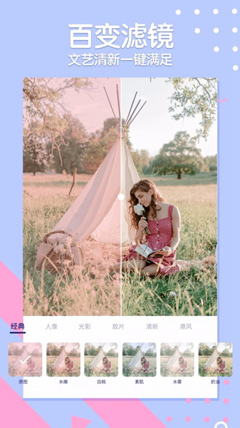 4、添加不一样的美颜滤镜效果,呈现不一样的图片风格,帮助打造精美图片;