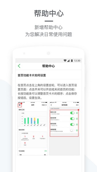 异常提醒,出勤的迟到、早退、漏打卡等信息可以及时提醒用户;