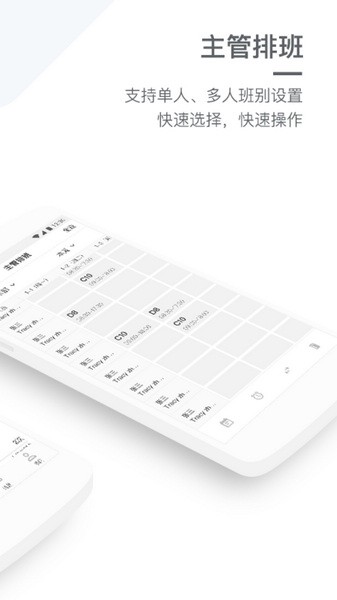 2.主管排班:支持单人、多人班别设置,快速选择,快速操作