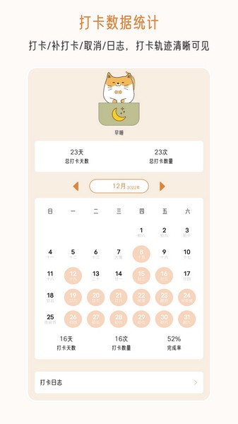 周期打卡,按天、按周、按月,打卡周期随心设定;