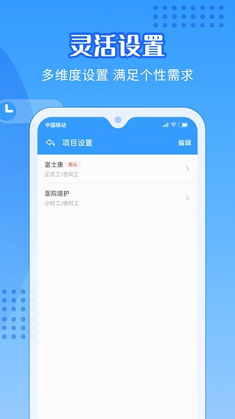 2、独特的项目管理制度。轻松帮您记录工作变动、一日多工等特殊场景加班;