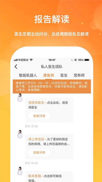 3、同时用户还可以通过软件,与专业的医生进行在线实时交流,获取肾脏养成指导。