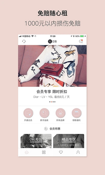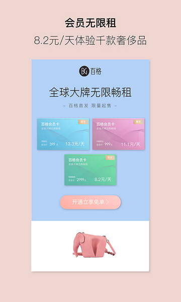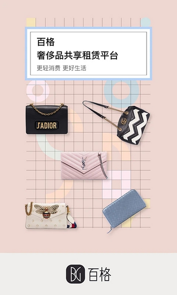 百格是一个值得您信赖的品牌包包共享平台,强调优质有品的生活态度,引导用户建立全新消费观念,以租代买,用剩下的钱去乞力巴扎罗看一次雪,去南极看一次阿德利企鹅,去小岛与座头鲸游泳...百格满足闲置奢侈品买卖和体验的线上交易场景,并用丰富的包源满足用户不同的需求,通过便捷轻松的一站式体验与贴心周到的专业服务,让每一位用户放心。