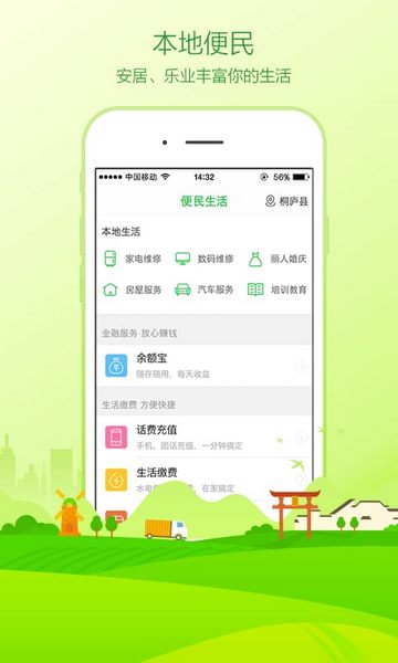 4、生活服务:话费充值,汽车火车票购买,生活缴费,城市服务查询;