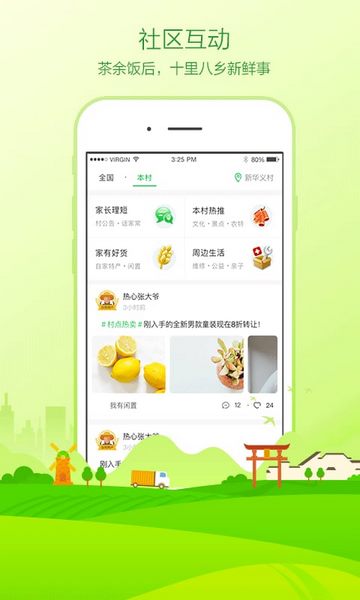 6、社区互动:村里咨询、土货、闲谈、种植等信息共享平台。