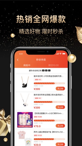 5、各种大牌秒杀产品整点推送,可及时在线参与购物,即可轻松抢到;