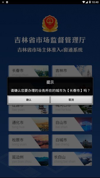 1、首先在手机里面打开吉林e窗通app,点击所属城市;