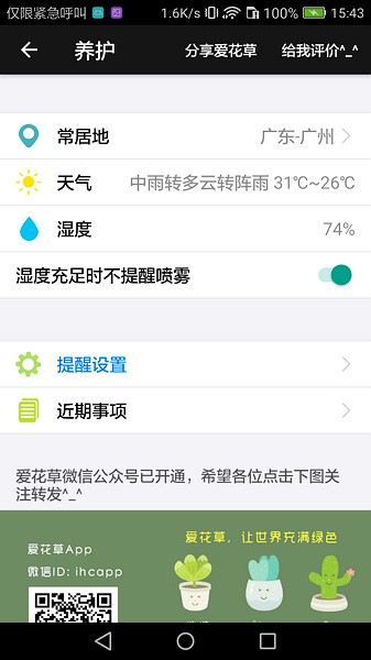 根据不同植物特性、不同季节、当地天气、养护方式来个性化提醒浇水、施肥、修剪、繁殖等养护需求。对于有独特经验的园艺爱好者,可以根据经验设定养护提醒频率。