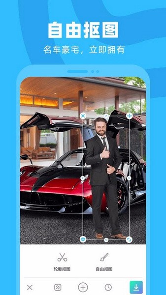 简单易操作的轮廓抠图、更灵活的自由抠图,随心所欲发挥自己的创意,名车豪宅,你想要的随时拥有!