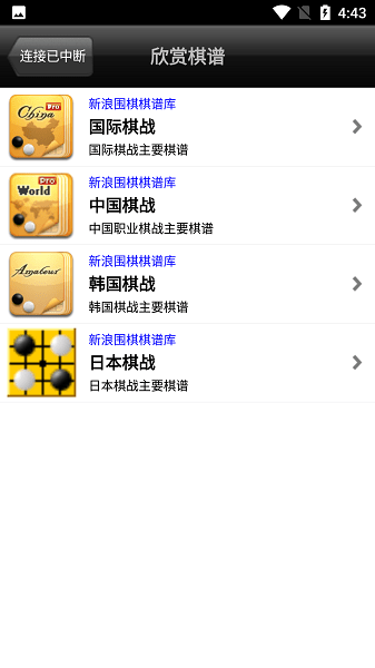 5、可以观看每天更新的国内外职业棋赛的棋谱。