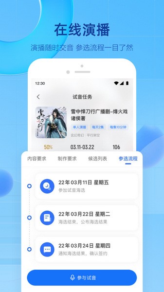 在线演播,随时录制,参选流程完整清晰