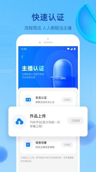 【声播】是TME播客创作中心推出的一款主播应用工具。主播登录后可享受「快速认证」「一键上传」「TME多端数据查看」等便捷化功能,同时还有「TME海量版权书随心录制」,让您的声音脱颖而出。