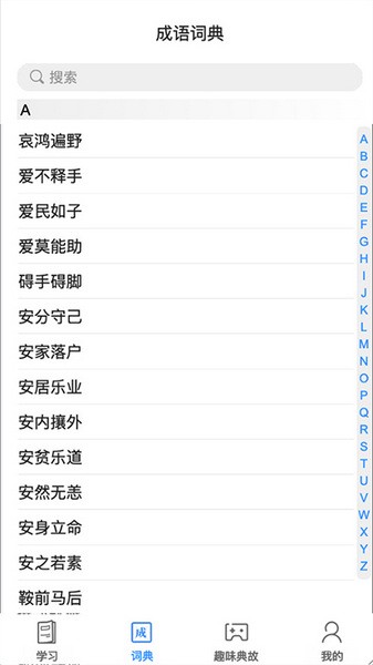 掌上秀才是一款很方便的成语学习软件,里面有很多成语词典和详细的释义,还有历史典故,可以让人更好地理解成语的用法。软件界面很友好,从A到Z排列得很清楚,方便查找,而且搜索功能也很强大。我觉得这个软件特别适合学生党或者对传统文化感兴趣的人,因为它不仅有学习的功能,还结合了游戏元素,比如成语猜谜和升官玩法,让学习变得更有趣。
