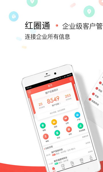 红圈通,帮助您和团队聚焦客户:将客户信息、CRM、客户有关的工作记录、日程计划、跟进动态、相关资讯有效聚合,快速规划和执行围绕客户的所有工作。