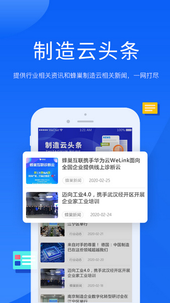 2、制造云头条,提供行业相关资讯和蜂巢制造云相关新闻,一网打尽。