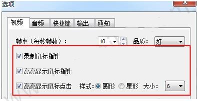 4、点击主界面的设置可以进行更多的设置,可以设置品质、是否录制鼠标、是否要对鼠标高亮显示