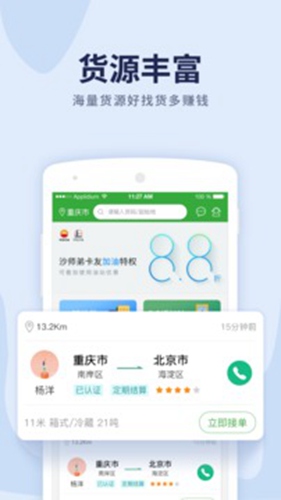 还有个加油特权,中石油和中石化都能打九折,这也太贴心了吧!而且APP还会实时提醒附近的货源,语音播报功能更是方便极了。作为一个经常跑长途的老司机,我最怕的就是空车返程,这个软件的智能调度系统能帮我快速匹配订单,往返都不用担心空车。