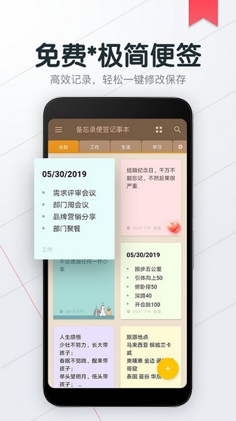3.多彩颜色来分类备忘录,有效区分生活、工作等不同便签。