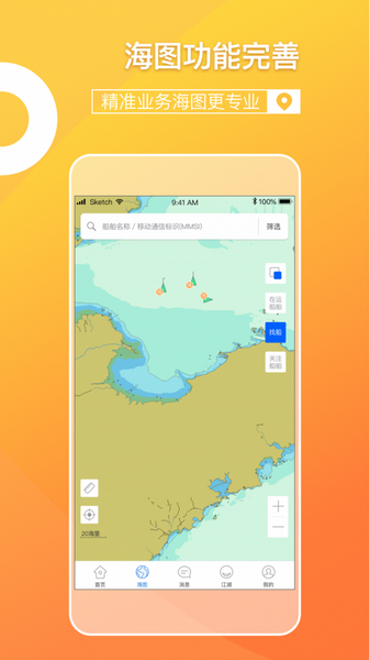 2、业务海图:船运帮创新的业务海图功能,可一次性显示出所有在运或管理船舶的船位,不再一艘一艘输入查询,物流信息一手掌握。