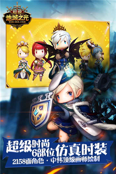 超级地城之光是一款低调奢华的暗黑风格3D ARPG手游,由韩国Eyedentity Games与起源工作室合力献上,带给玩家全新的掌上乱斗体验!作为超人气动作手游,它以其独特的韩系画风,Q萌的角色设定,以及刺激的连招战斗,展现出别样的暴力萌魅力!当暗之末裔威胁鲁米那大陆,光明城的命运危在旦夕,全球的光之后裔响应召唤,踏上驱逐邪恶的冒险之旅。