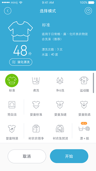 4.远程控制,选择洗衣程序、设定附件功能,自定义上传洗衣需求