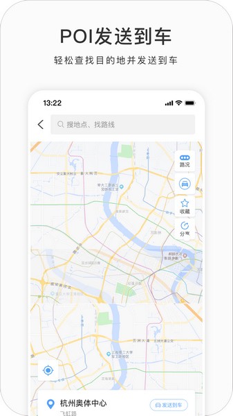 【地图】通过手机客户端可查看车辆位置,设置导航路线,查看附近POI点,POI点发送到车、微信接送好友等功能。