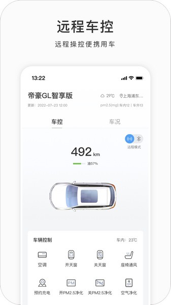 【车况查询】通过手机客户端远程查看车窗、车门、后备箱等状态。