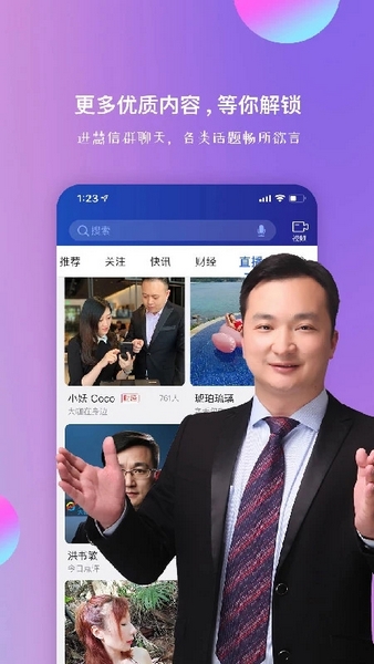 1、在应用中就能实现直播,可高效的在线进行互动交流;