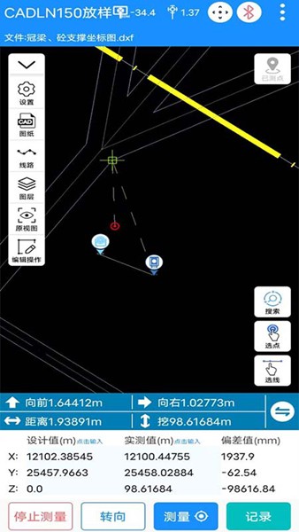1.新增地图导航功能,结合坐标系统,可在地图上叠加显示线路、桥梁、CAD图纸、点等设计信息;