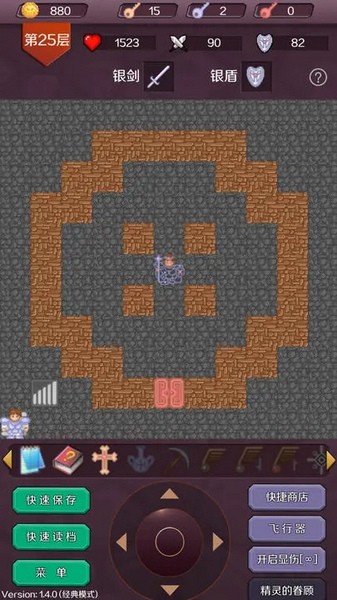 此时攻22,防20,黄钥匙*2,蓝钥匙*1,注意存档不要打多余的怪。