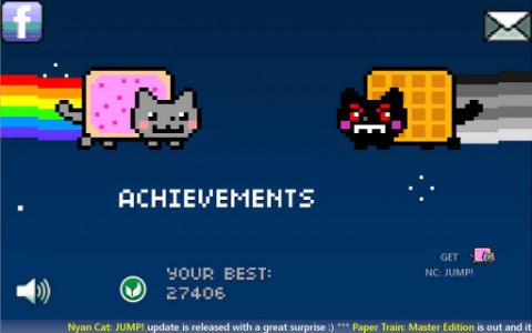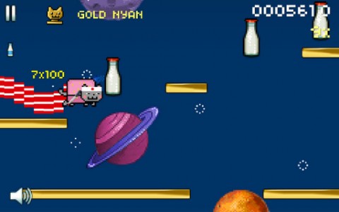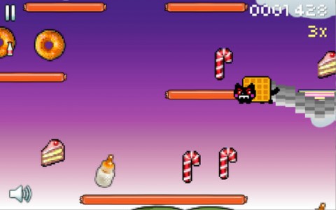 如果你还不知道彩虹喵,那就来这个网站先来洗洗脑吧:nyan.cat。游戏音乐就是这欢快的喵喵喵喵喵喵,游戏的画面和操作倒是很普通,点击彩虹喵它就会跳起,路上你要吃掉各种道具,糖果、冰激凌、牛奶等等,还要避开对面跑来的同类。
