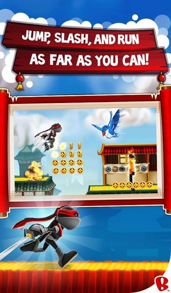 跳跃、砍杀然后逃命!沿途再顺手拿一些金币和玉水晶,升级你的忍者能力。连续命中3个势均力敌的敌人,获得英雄增强器提升。在空中的溜索上飞行。