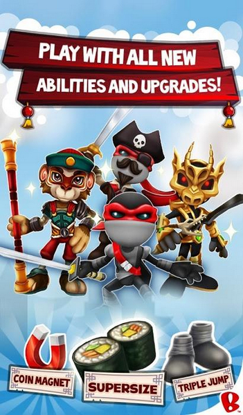 躲过星形飞镖、致命的火坑与邪恶的松鼠。骑在摩天大楼般的熊猫身上,全面体验令人震撼的场面。变成强大无比的忍者“双跳”大师 ,然后在半空中再跳一次,藐视所有物理和自然规律。