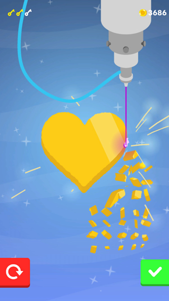 《激光切割大师》是一款挺有意思的手机游戏,玩法主要是用激光切割各种物体。游戏里的关卡很多,每个关卡都有不同的挑战,你需要根据屏幕上的辅助线精准操作激光枪,把多余的材料切掉,看着物体慢慢成型,感觉还挺有成就感的。游戏里还有评分系统,根据切割的准确度给你打分,挺有动力去追求高分。