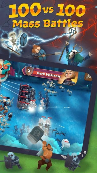 大规模100v100单位大战-组建一支军队,看着它以空转的形式作战-大量的单位和皮肤。无尽的乐趣!战斗军团将您带给有抱负的指挥官的鞋子,当您在难忘的胜利中排名靠前时,您的军团也是如此。